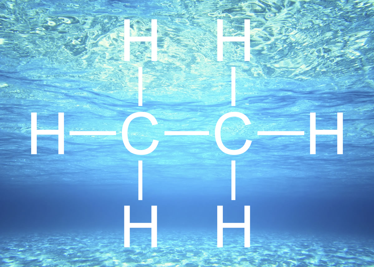 It doesn’t take long smashing Hydrogen atoms together to make all of the elements of the Periodic Table. There is one particular element, Carbon, that has a remarkable chemistry. So much so that the chemistry of Carbon is a separate field of study: Organic Chemistry. Shown here is the molecule Ethane, as Chemical symbols.