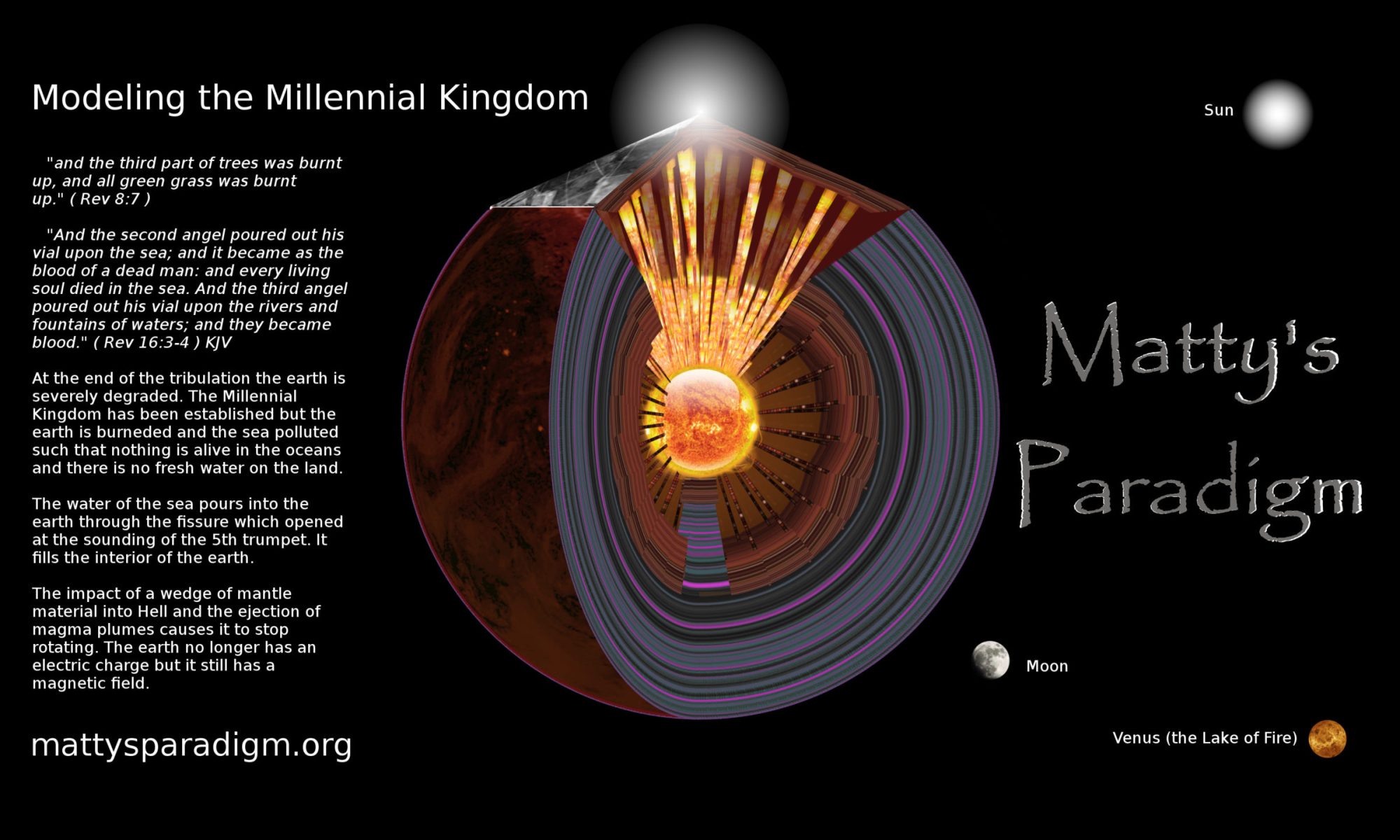 It’s also necessary to bear in mind that the surface of the Earth has been ravaged by plagues. It’s been bombarded with burning hail, poisoned, and the sea turned to blood. The dry land has been moved great distances to bring it together into a super-continent which has been stretched out and lifted up to a new radius of 10, 795 km. It’s been devastated.