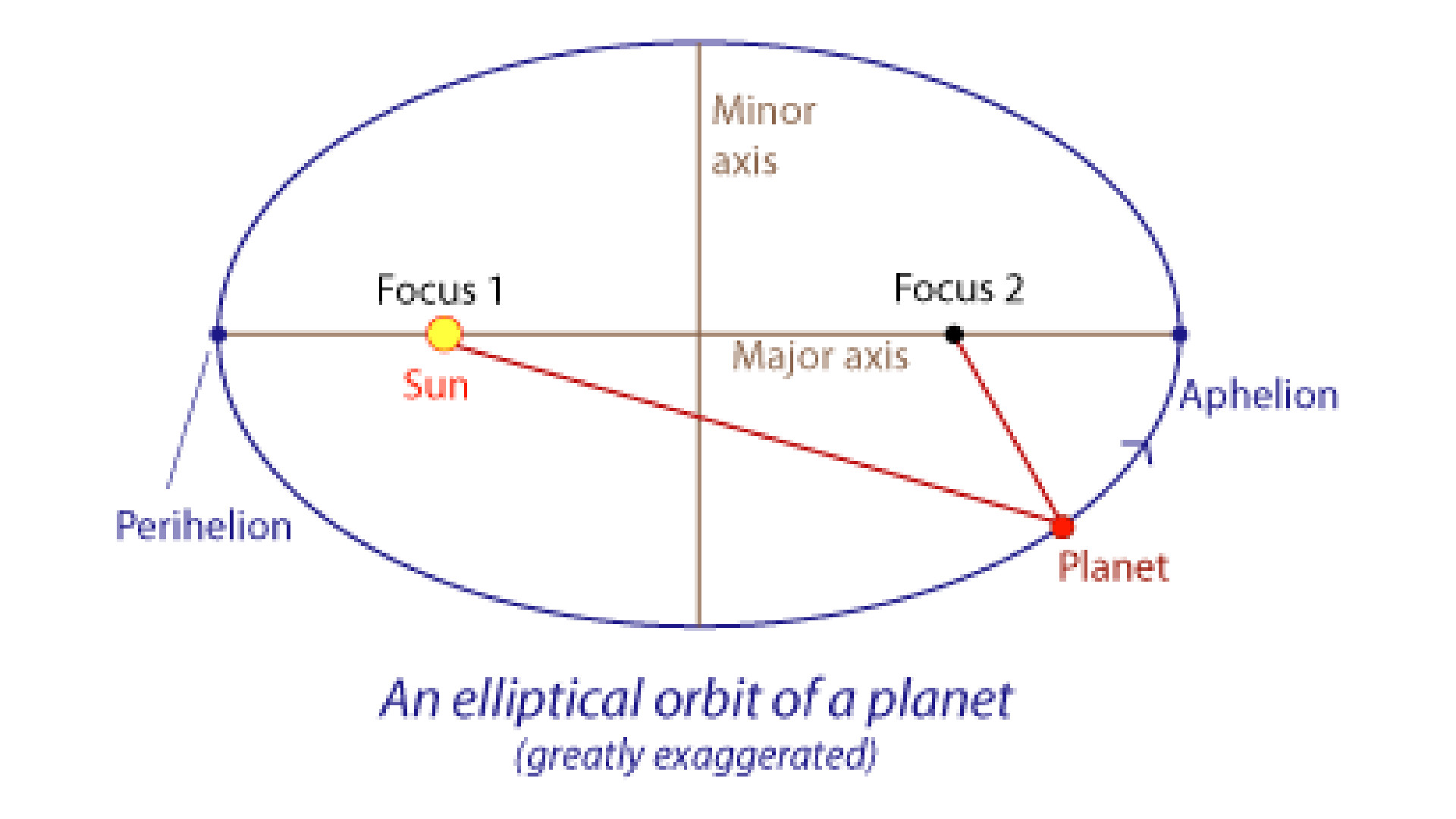 In reality, the planetary orbits are much less eliptical and much more circular. The difference between both axes of the ellipse is very small, so if we drew this to scale, it would resemble a circle. Excepting for Pluto and for Mercury, whose orbits are more elliptical than the rest of planets (please, let’s don’t get started about Pluto).