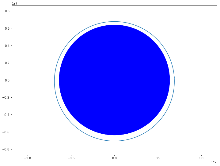 Now we have all the tools we need to plot orbits. We will try to plot the orbit of an artificial satellite. The initial conditions are similar to the ones for the Hubble Space Telescope. Let’s compute its orbit and plot it.