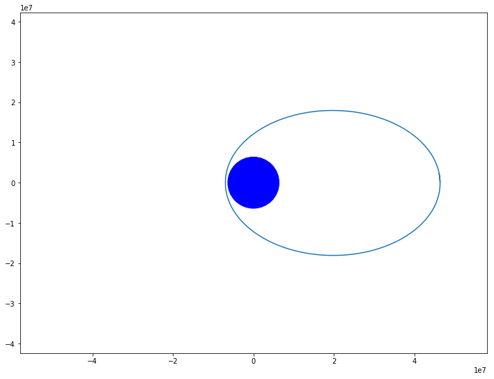 molniya = orbit(EM, (Distance,0.), (0.,Speed), TIME, STEPS)