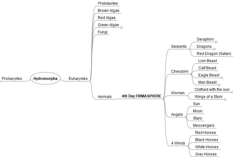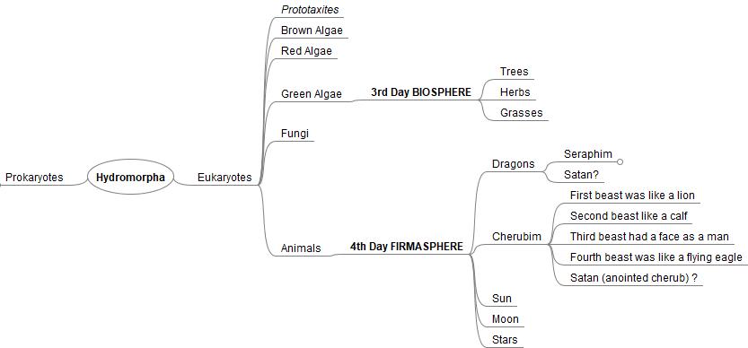 The next phase of the development of life was in the firmasphere on the fourth day. We don’t have much to go on, but we do have a place to start. We’re assuming that heavenly beings are based on Eukaryotic cells as opposed to something completely different and unknown. This assumption isn’t unwarranted since the first life developed in the hydromorpha which was before the heavens and the Earth were separated.