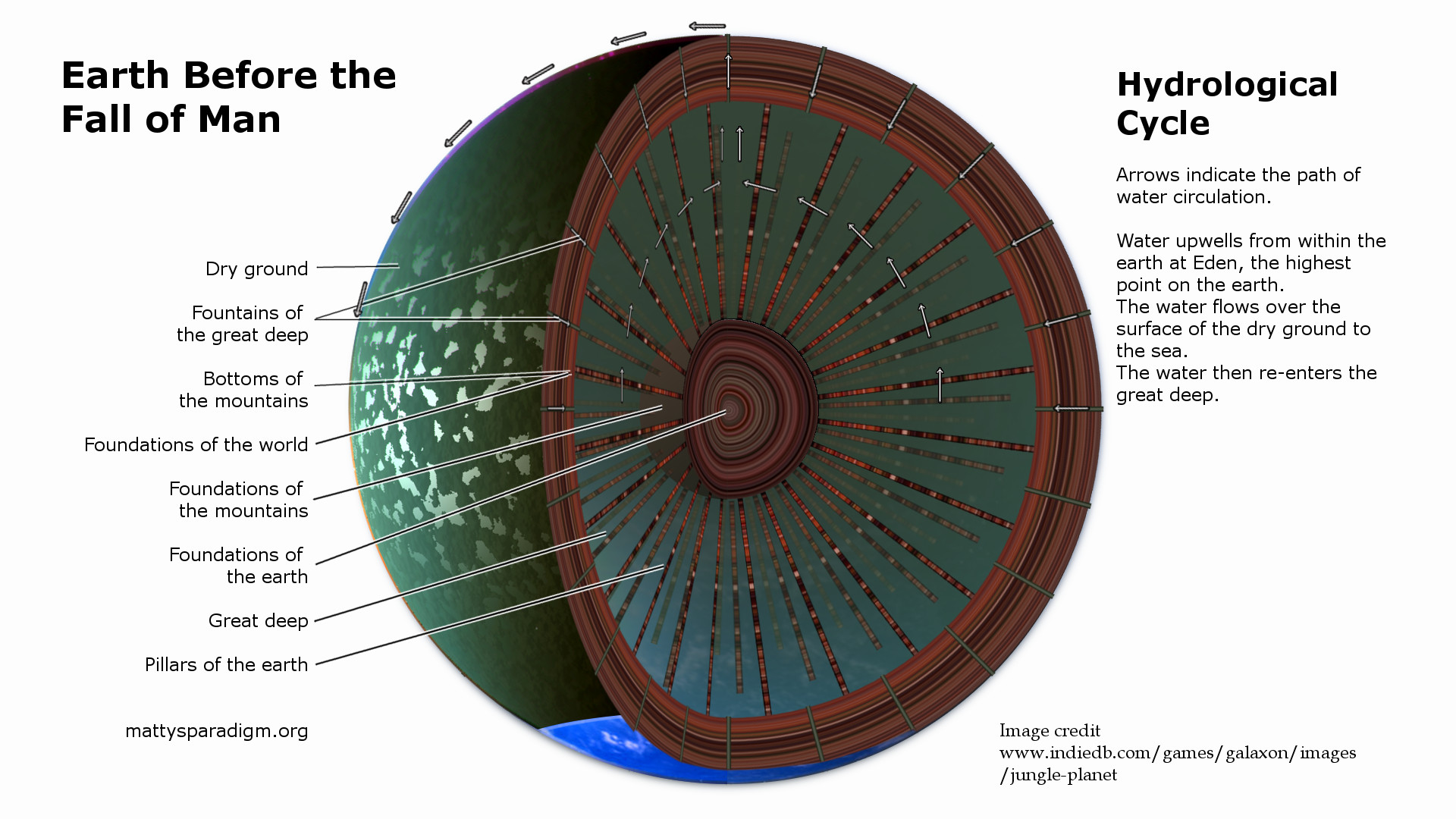 Today’s image shows a proposed internal structure for the earth at the time when creation is completed and before the fall of man. For each physical feature on the diagram I have links to the posts which discuss how the explanation was deduced.