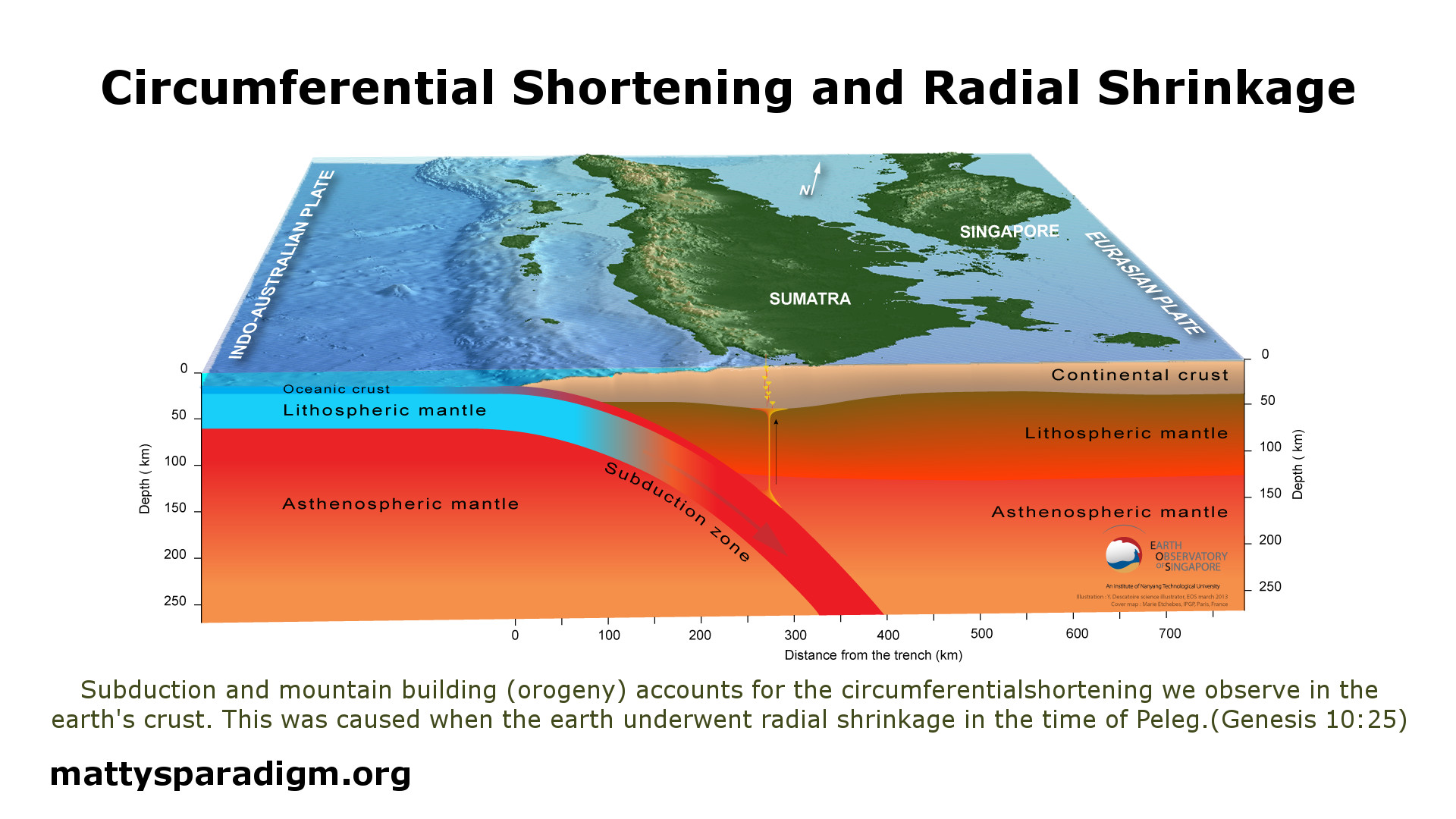 Subduction and mountain building (orogeny) accounts for the circumferential shortening we observe in the earth’s crust.