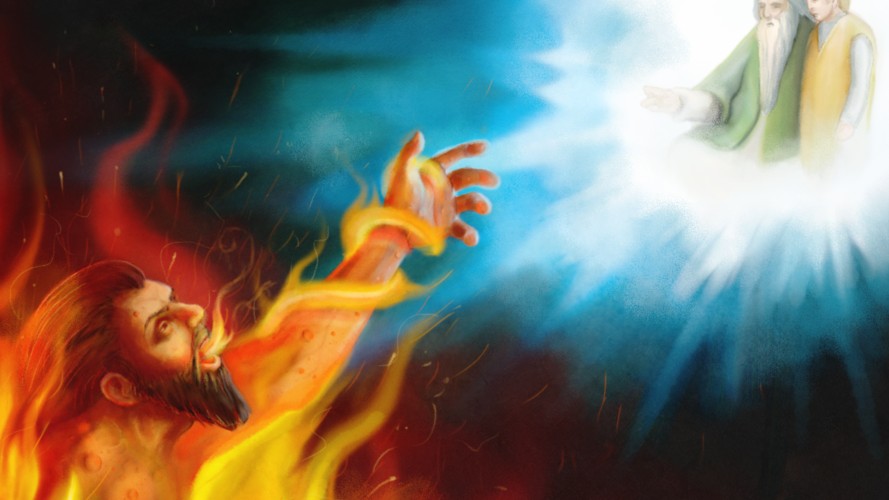 There was a certain rich man, which was clothed in purple and fine linen, and fared sumptuously every day: And there was a certain beggar named Lazarus, which was laid at his gate, full of sores, And desiring to be fed with the crumbs which fell from the rich man’s table: moreover the dogs came and licked his sores. And it came to pass, that the beggar died, and was carried by the angels into Abraham’s bosom: the rich man also died, and was buried; And in hell he lift up his eyes, being in torments, and seeth Abraham afar off, and Lazarus in his bosom. And he cried and said, Father Abraham, have mercy on me, and send Lazarus, that he may dip the tip of his finger in water, and cool my tongue; for I am tormented in this flame. But Abraham said, Son, remember that thou in thy lifetime receivedst thy good things, and likewise Lazarus evil things: but now he is comforted, and thou art tormented. And beside all this, between us and you there is a great gulf fixed: so that they which would pass from hence to you cannot; neither can they pass to us, that would come from thence. Then he said, I pray thee therefore, father, that thou wouldest send him to my father’s house: For I have five brethren; that he may testify unto them, lest they also come into this place of torment. Abraham saith unto him, They have Moses and the prophets; let them hear them. And he said, Nay, father Abraham: but if one went unto them from the dead, they will repent. And he said unto him, If they hear not Moses and the prophets, neither will they be persuaded, though one rose from the dead.
