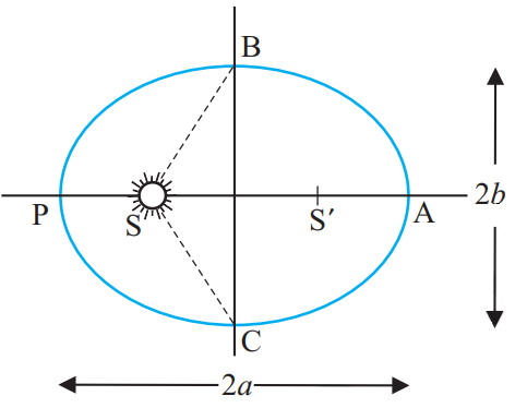 Explanation: An ellipse traced out by a planet around the sun. The closest point is P and the farthest point is A, P is called the perihelion and A the aphelion. The semimajor axis is half the distance AP.