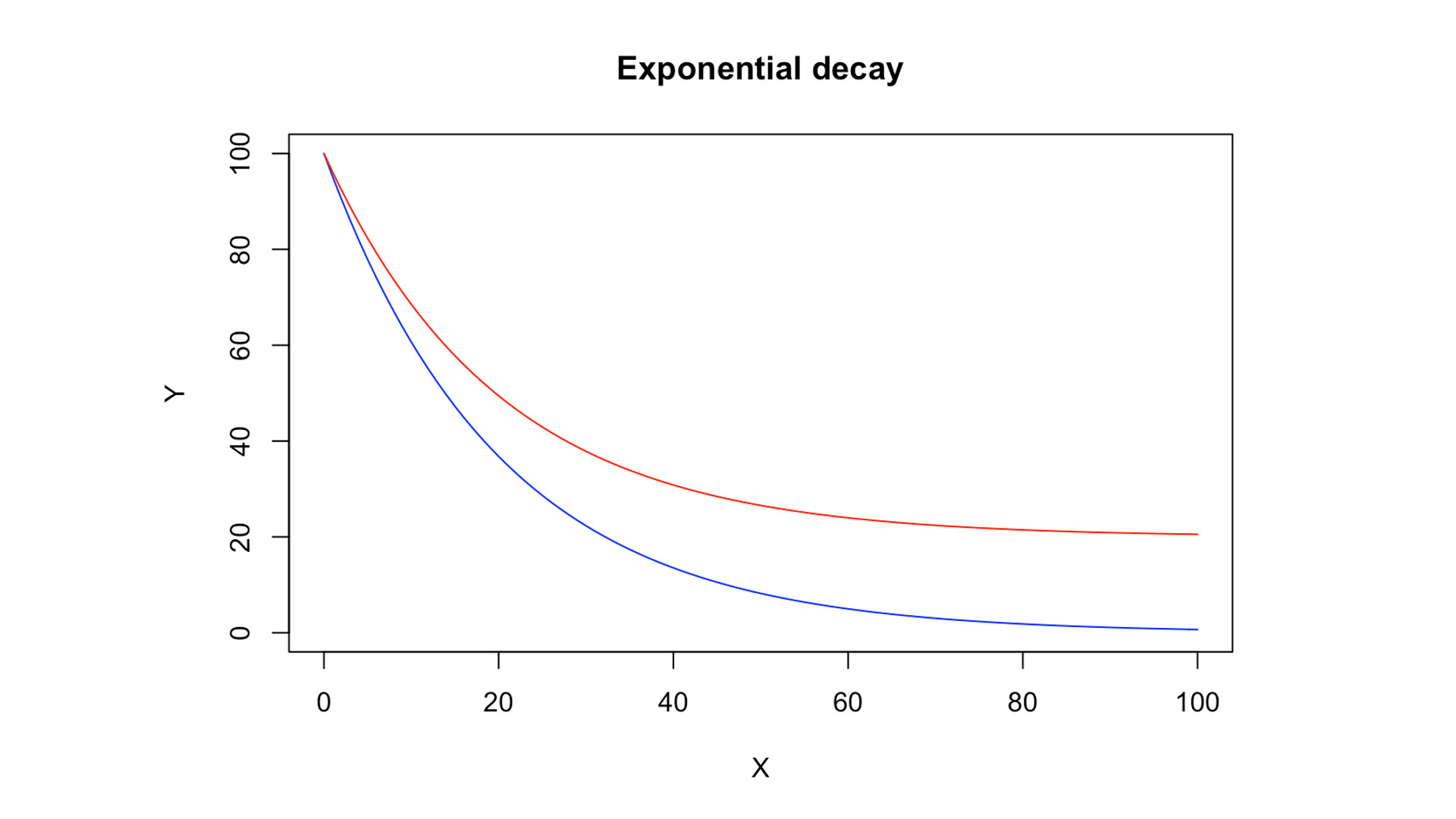 A quantity is subject to exponential decay if it decreases at a rate proportional to its current value.