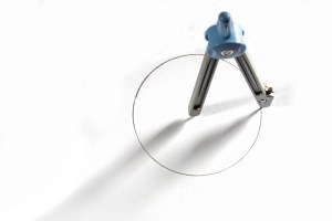 A compass is a device used to draw a circle that depends on having a sharp point. The point of the compass is the location of the center of the circle, and in our scenario it’s the center of gravity.