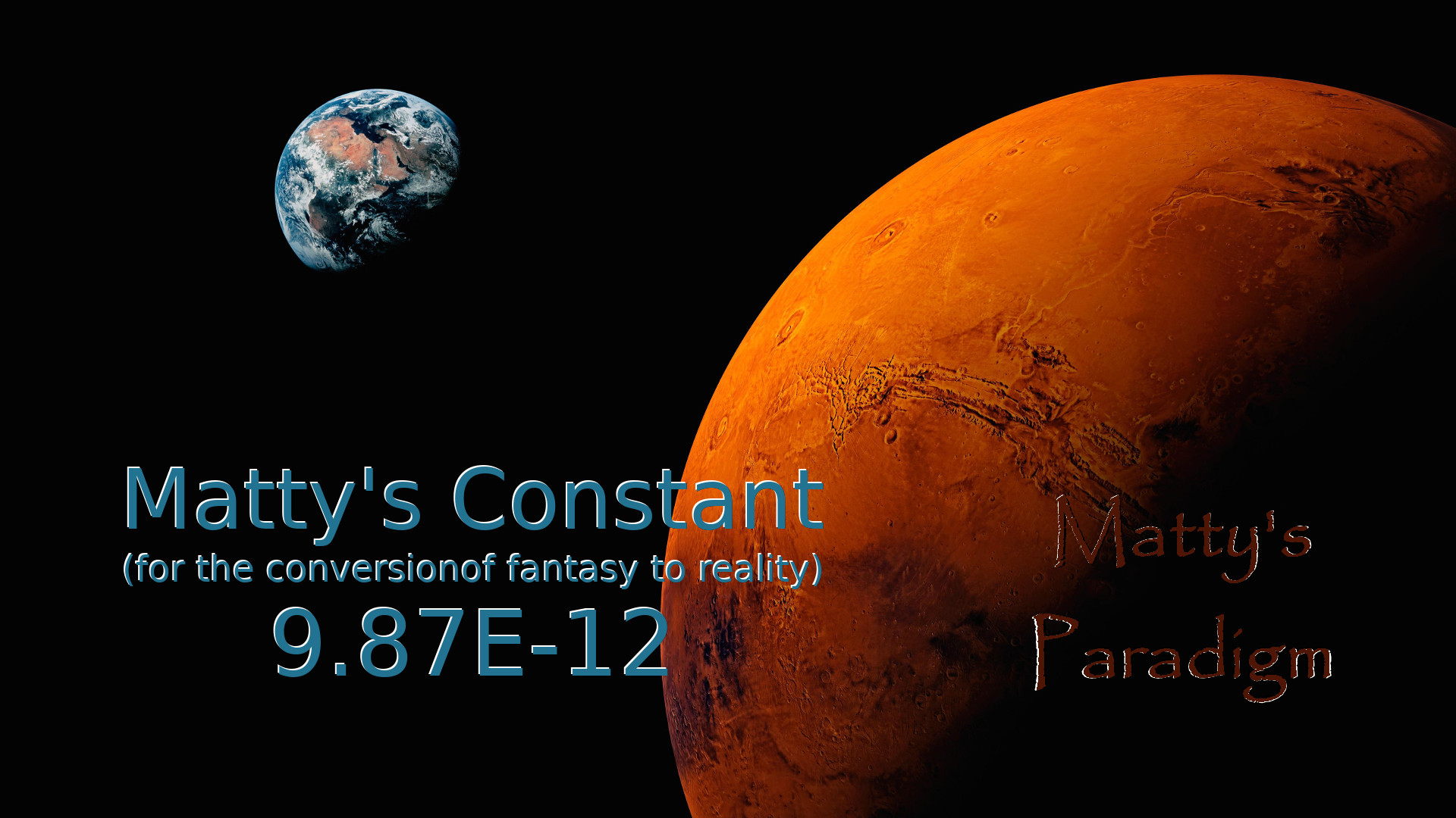 We can convert heliocentric planetary mass values to Geocentrospheric using Matty’s Constant, 9.87^-12, for the conversion of fantasy into reality.