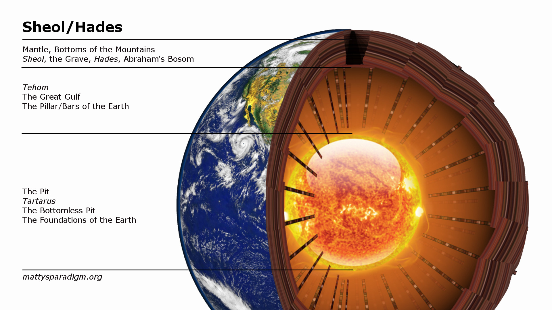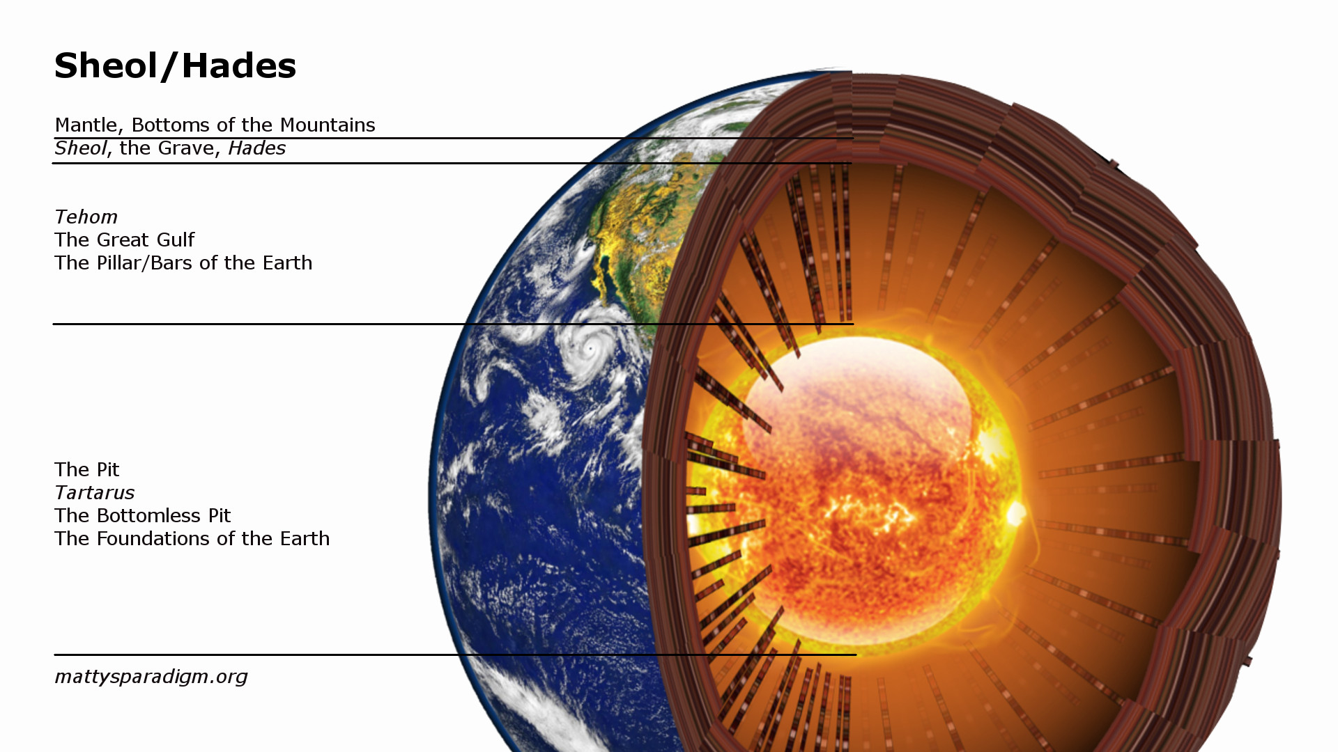 Hell, it turns out, is a lot of things. There’s a midst of hell, a belly of hell and a lowest hell. The Hebrew and Greek words are modified in ways which make groupings that correspond to the regions of the interior of the Earth.