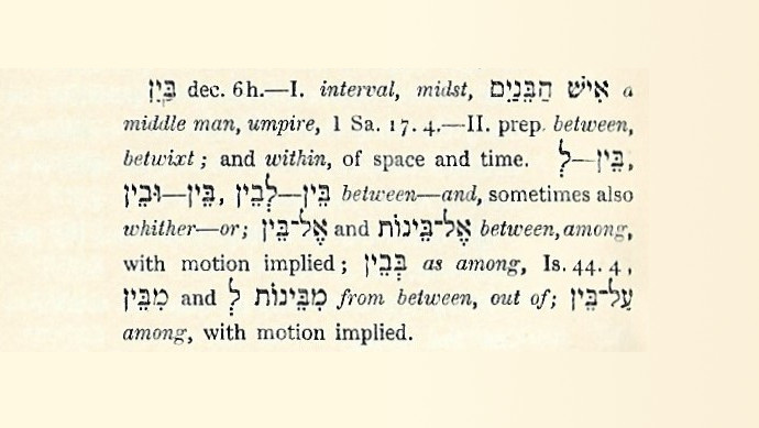 The Hebrew words bayin – בֵּין and bin – בִּין are very nearly the same word. They’re part of the meaning of a root which means: to understand nuance, to separate between.