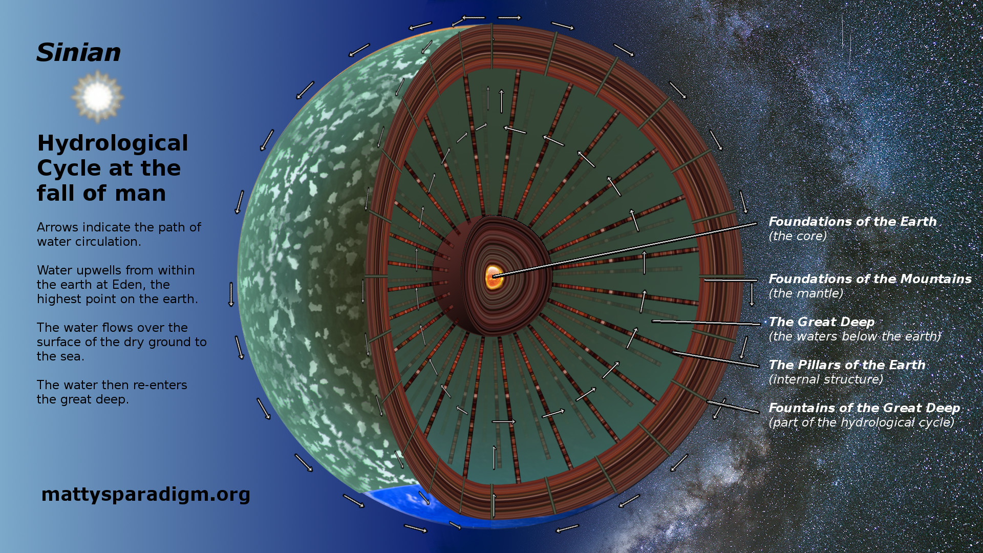 Diagram of the Earth on the second day as gravity caused the earth to form as layers of concentric sediment